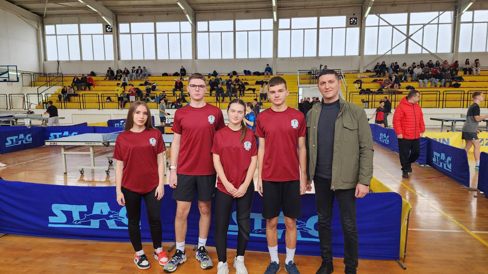 Гимназиската екипа во состав: Матеј Ѓорѓиев, Димитар Николов, Миа Перкова и Нина Крстевска, денес учествуваше на државното првенство во пинг понг